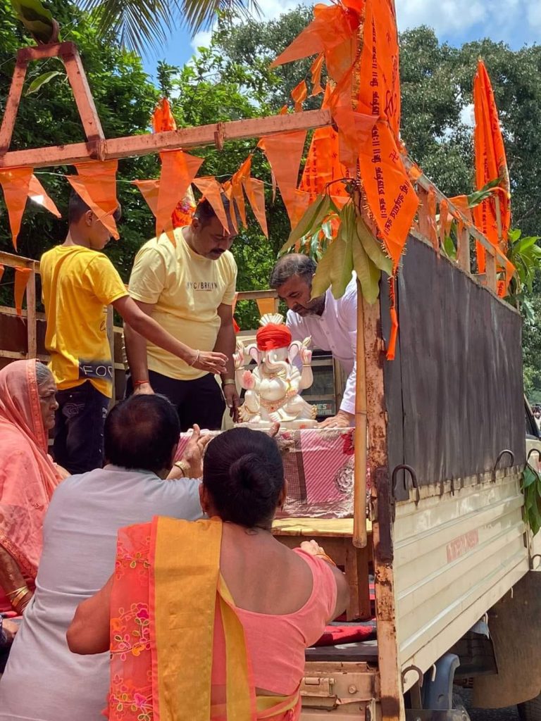 पिछले दिनों खुर्सीपार वार्ड-48 जोन-3 क्रांति मार्केट स्थित श्रीगणेश जी की मूर्ति को कुछ असामाजिक तत्वों द्वारा क्षति पहुंचाई गई थी। यह बड़ा दुःखद और निंदनीय है, धार्मिक भावनाओं को देखते हुए इस पर पुलिस प्रशासन द्वारा अपराध पंजीबद्ध किया गया है, दोषी की गिरफ्तारी कर जांच जारी है।आज वार्ड-48 जोन-3 पार्षद शुभम झा के द्वारा पुन: रहवासियों एवं परिवार जनों के साथ मिलकर बड़े ही हर्षोल्लास और खुशी के साथ मिलकर भगवान श्री गणेश जी की मूर्ति का तथा 7 मंदिरों का भ्रमण एवं प्राण प्रतिष्ठा कर हवन एवं महाभोग का आनंद लिया।