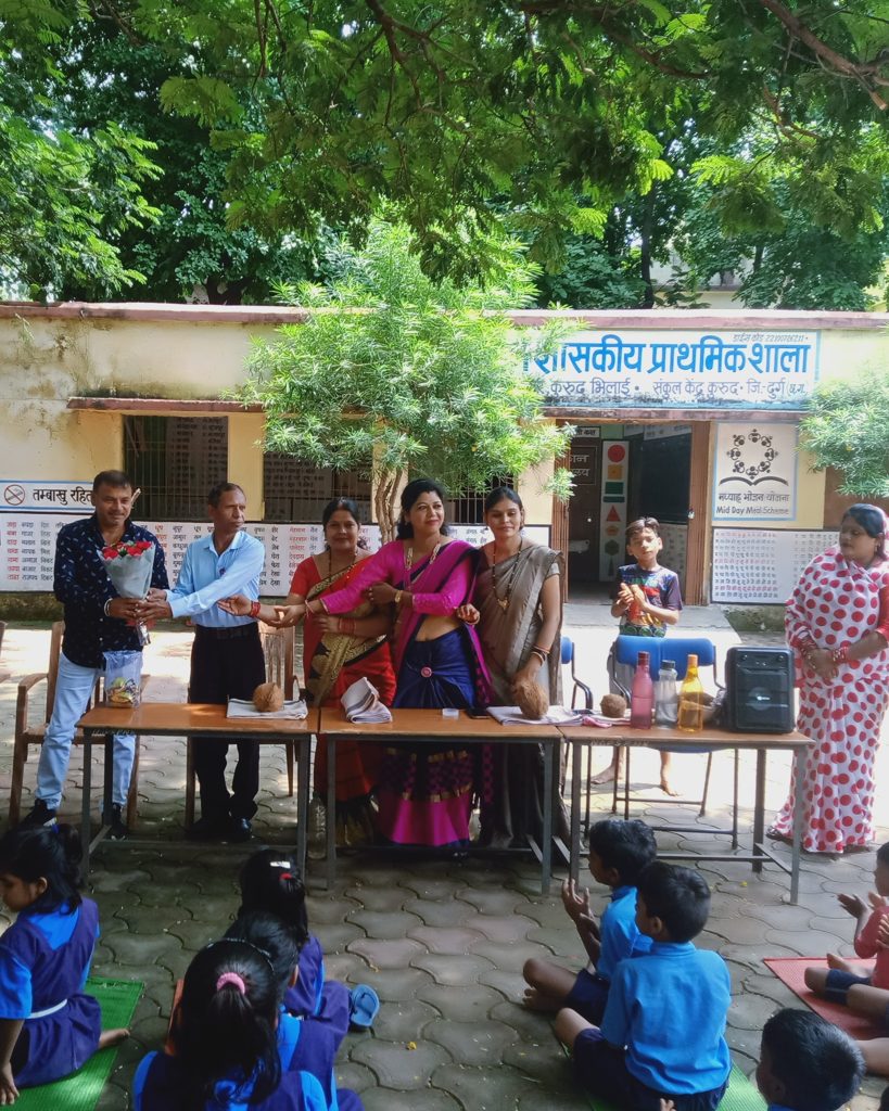 भिलाई/शासकीय प्राथमिक शाला ढांचा भवन समीपस्थ संकुल केंद्र कुरूद में शिक्षक दिवस के अवसर पर शिक्षकों का सम्मान किया गया। उक्त कार्यक्रम के मुख्य अतिथि समाजसेवी मंगल सिंह रहे एवं विशेष अतिथियों के रूप में पालक शिक्षा समिति के अध्यक्ष कमलजीत प्रसाद,खेल प्रकोष्ठ जिला महामंत्री नंदकिशोर टंडन,सुरेश देवनाथ, राजू भगत, रिजवान और पत्रकार गौतम डे रहे। कार्यक्रम का संचालन वरिष्ठ पत्रकार अखिलेश श्रीवास्तव ने किया। इस दौरान मुख्य अतिथि की आसंदी से समाजसेवी मंगल सिंह ने शिक्षकों और बच्चों को संबोधित करते हुए कहा कि शिक्षा समाज को दिशा और दशा प्रदान करती है शिक्षा के बिना समाज का विकास संभव नही है, आज हम लोग यहां सभी सर्वपल्ली डॉ. राधाकृष्णन जी को श्रद्धा सुमन अर्पित करते हुए उनके रास्ते पर चलने के लिए एकत्र हुए और यह बेहद ही खुशी की बात है कि शिक्षा के क्षेत्र में बच्चे नए-नए आयाम गढ़ रहे तथा सभी बच्चों के उज्जवल भविष्य की कामना करता हुॅ उन सभी गुरुजनों को प्रणाम करता हूं जो आज समाज में शिक्षा का प्रकाश फैला रहे हैं। इस दौरान सभी शिक्षकों का और अन्य कर्मचारियों का शाल एवं श्रीफल द्वारा अभिनंदन किया गया। सम्मानित होने वाले शिक्षकों में प्रमुख रूप से एचएम खेदु राम साहू, शिक्षिका गीता चौरसिया, शशि किरण भुसाखरे, सरिता बघेल एवं स्टाफ धनेश्वरी, उदासियां बाई। मुख्य अतिथि के द्वारा बच्चों को चॉकलेट एवं मिठाई का भी वितरण किया गया और मुख्य अतिथि ने अपने उद्बोधन में आश्वस्त किया कि जो भी यहां पर समस्याएं हैं उसके निराकरण के लिए हम पूरी तरह से प्रयासरत रहेंगे। कार्यक्रम के अंत में पालक समिति के अध्यक्ष कंवलजीत प्रसाद ने आए हुए सभी अतिथि,शिक्षक एवं बच्चों का आभार व्यक्त करते हुए उज्जवल भविष्य की कामना की है।