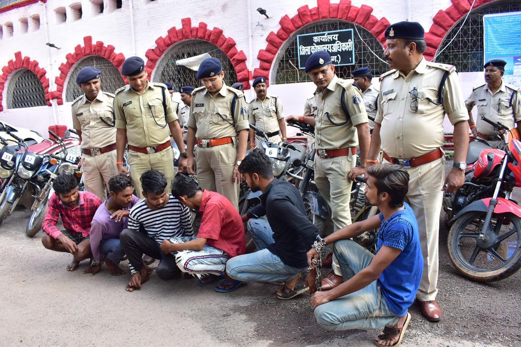 दुर्ग/पुलिस अधीक्षक डॉ.अभिषेक पल्लव के निर्देशन में अतिरिक्त पुलिस अधीक्षक अनंत साहू , पुलिस अनुविभागीय अधिकारी पाटन देवांश सिंह राठौर के मार्ग दर्शन में चलाए जा रहे रात्रि गश्त के अभियान में जवानों को ब्रीफिंग और डिब्रीफिंग का फायदा देखने को मिल रहा है जिसके तहत जवानों के द्वारा मुस्तैदी से रात्रि गश्त में ड्यूटी की जा रही है उसका परिणाम भी देखने को मिल रहा है थाना जामगांव ( आर . ) पुलिस द्वारा 13.10.2022 की रात्रि विजुअल पुलिसिंग के अंतर्गत वाहन की चैकिंग की जा रही थी । चैकिंग दौरान वाहनो का कागजात चैक किया जा रहा था , शशिकांत चन्द्राकर , कोमेश यादव निवासी भन्सुली ( आर . ) को मोटर सायकल का कागजात चैकिंग करने पर गोल – मोल जबाब देने परे नजदीक के गांव के होने से उनकी तस्दीक की गई । शंका के आधार पर बारिकी से पूछताछ करने पर अपने अन्य चार साथियों के साथ बाईक चोरी करना बताने से व चोरी की मोटर सायकल को बेचने की फिराक में घर पर छिपा कर रखना बताने से आरोपी 1. शशिकांत चन्द्राकर , 2. कोमेश यादव , 3. हितेश्वर चन्द्राकर , 4. जितेन्द्र बंजारे , 5. गोपेन्द्र यादव , 6. राहुल चनापे के द्वारा दिये गये मेमोरण्डम मुताबिक टीम गठित कर पुलिस अनुविभागीय अधिकारी पाटन देवांश सिंह राठौर के मार्गदर्शन में 02 टीम गठित कर आरोपियों के कब्जे से एक इण्डिका कार , दो बुलेट सहित कुल 14 वाहनों को आरोपियो से जप्त किया गया । जिसे अपराध धारा 41 ( 1 + 4 ) जाफौ . / 379 भादवि . के तहत् जप्त किया गया , जप्त वाहनो के संबंध में आरटीओ विभाग से जानकारी प्राप्त कर वाहनो मालिको का पता- तलाश किया जाता हैं , आरोपीगण को गिरफ्तार कर न्यायालय में पेश किया गया । उक्त कार्यवाही में थाना प्रभारी जामगांव ( आर . ) उप निरीक्षक ऐनुकुमार देवांगन , सहायक उप निरीक्षक सुरेन्द्र तारम , चन्द्रशेखर सोनी , आरक्षक महेन्द्र बंजारे , श्रवण साहू , भपेन्द्र साहू , वेद प्रकाश साहू , जयप्रकाश साहू , राजीव दुबे , प्रमोद कुमार मण्डावी , महिला आरक्षक किरण सोनकर एवं अन्य स्टाफ का विशेष योगदान रहा । “नाम आरोपी”- 01. शाशकांत चंद्राकर पिता संजय चंद्राकर उम्र 22 वर्ष निवासी भनसुली आर थाना जामगांव – आर , 02. कोमेश यादव पिता किशोर यादव उम्र 24 वर्ष निवासी भनसुली – आर थाना जामगांव – आर , 03. हितेश्वर प्रसाद चंद्राकर पिता चंद्रिका चंद्राकर उम्र 26 वर्ष निवासी भनसुली आर थाना जामगांव – आर , 04. राहुल चनापे पिता गोवर्धन चनापे उम्र 19 वर्ष निवासी भनसुली आर थाना जामगांव – आर जिला दुर्ग , 05. जितेन्द्र कुमार बंजारे पिता ढेलूराम बंजारे उम्र 19 वर्ष निवासी भनुसली आर थाना जामगांव – आर , 06. गोपेन्द्र यादव उर्फ गोपू पिता ईश्वर यादव उम्र 19 वर्ष निवासी भनसुली – आर थाना जामगांव – आर जिला दुर्ग।