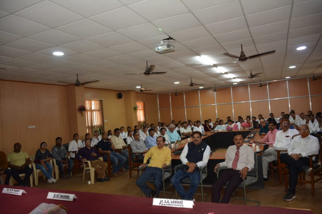 अंजोर / आजादी के अमृत महोत्सव के उपलक्ष्य में विश्वविद्यालय परिसर स्थित पशुचिकित्सा एवं पशुपालन महाविद्यालय, अंजोरा, दुर्ग के एनाटॉमी विभाग द्वारा “ट्रेनिंग कम डेमोंसट्रेशन आन टैक्सीडर्मी” विषय पर दो दिवसीय कार्यक्रम का आयोजन किया गया। प्रशिक्षण कार्यक्रम के उद्घाटन सत्र में मुख्य संरक्षक व विश्वविद्यालय के कुलपति डॉ.(कर्नल) एन.पी. दक्षिणकर, कार्यक्रम के अध्यक्ष/निदेशक शिक्षण/विभागाध्यक्ष एनाटॉमी विभाग डॉ.एस.पी. इंगोले तथा संरक्षक/अधिष्ठाता डॉ.एस.के. तिवारी तथा टैक्सीडर्मीस्ट डॉ.एस.ए. गायकवाड़ प्राध्यापक व विभागाध्यक्ष वेटनरी एनाटॉमी विभाग पशुचिकित्सा महाविद्यालय, मुंबई, कार्यक्रम सचिव डॉ. दुर्गा चौरसिया, विश्वविद्यालय जनसंपर्क अधिकारी डॉ. दिलीप चौधरी, सह-सचिव डॉ.ओ.पी.दीनानी, डॉ.शिवेश देशमुख, निदेशक अनुसंधान सेवाएं डॉ.जी.के.दत्ता, अधिष्ठाता मात्स्यिकी महाविद्यालय कवर्धा, डॉ. राजू शारदा, निदेशक जैव प्रौद्योगिकी डॉ.आर.सी.घोष, निदेशक वन्य प्राणी संस्थान डॉ.एस.एल.अली, प्राध्यापकों एवं छात्र-छात्राओं की गरिमामय उपस्थिति रही। अधिष्ठाता डॉ.एस.के. तिवारी ने टैक्सीडर्मी के इतिहास और उसके महत्व पर प्रकाश डालते हुए इसे उद्यमिता के रूप में अपनाने के लिए विद्यार्थियों को प्रेरित किया। कुलपति डॉ.(कर्नल) एन.पी.दक्षिणकर ने चर्मपूर्ण कला के द्वारा राष्ट्रीय पशु पक्षियों एवं विलुप्त प्रजाति के संग्रहण करने की भूमिका पर प्रकाश डालते हुए डॉ. गायकवाड़ के योगदान पर विस्तृत रूप से प्रकाश डाला। उन्होंने पशुचिकित्सा महाविद्यालय के प्राध्यापकों को टैक्सीडर्मी सीखने और छात्र छात्राओं को प्रशिक्षित करने के लिए प्रेरित किया ताकि वे मृत पशु-पक्षियों से आय अर्जित कर सकें। टैक्सीडर्मीस्ट डॉ.एस.ए. गायकवाड़ ने पावर प्वाइंट प्रजेंटेशन के माध्यम से पशु-पक्षियों, मछली, कुत्ते के टैक्सीडर्मी बनाने की कला पर विस्तृत व्याख्यान दिया। उन्होंने छत्तीसगढ़ की सोनकुकड़ी का टैक्सीडर्मी बनाने की प्रक्रिया को चरणबद्ध तरीके से छात्र-छात्राओं और विभागीय सह-प्राध्यापकों को प्रायोगिक प्रशिक्षण दिया। चर्मपूर्ण कला एक प्रकार का शरीर रचना शास्त्र है जिसमें कला एवं शरीर रचना विज्ञान का संगम है इसमें चर्मकला, शिल्प कला, काष्ठकला, पेंटिंग, शरीर रचना शास्त्र कला इन पांचों कलाओं का संगम है। इसके माध्यम से राष्ट्रीय मृत पशु-पक्षियों को संरक्षित कर शिक्षण, शोध एवं विस्तार गतिविधियों को आगे बढ़ाने में सहयोग मिलेगा।