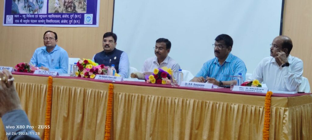 दाऊ श्री वासुदेव चंद्राकर कामधेनू विश्वविद्यालय अंजोरा के कुलपति एवं संभाग आयुक्त महादेव कावरे , विश्वविद्यालय कुलसचिव डॉ. आर .के. सोनवाने, अधिष्ठाता डॉ एस .के. तिवारी, निदेशक विस्तार शिक्षा डॉ संजय शाक्य ,विश्वविद्यालय के निदेशकगण, प्रशिक्षण प्रभारी डॉक्टर रामचन्द्र रामटेके, प्राध्यापकगण, जनसंपर्क अधिकारी एवं प्रशिक्षणार्थियों की गरिमामयी उपस्थिति में दिनांक 26_28 जुलाई 2023 तक “बकरी पालन प्रबंधन एवं उद्यमिता विकास” विषय पर तीन दिवसीय प्रशिक्षण का शुभांरभ