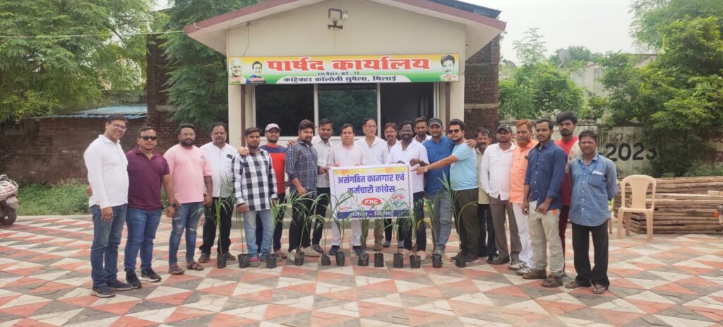 आज दिनांक 9 अगस्त को वार्ड 18 कॉन्टैक्टर कॉलोनी में असंगठित कामगार एवं कर्मचारी कांग्रेस ने विश्व आदिवासी दिवस के उपलक्ष में वृक्षारोपण का कार्यक्रम कर पर्यावरण को संरक्षित करने का काम किया। वृक्षारोपण कार्यक्रम असंगठित कामगार एवं कर्मचारी कांग्रेस के जिला अध्यक्ष बजरंगी लाल सिंह के नेतृत्व में किया गया इस अवसर पर जिला कांग्रेस कमेटी के अध्यक्ष मुकेश चंद्राकर एम आई सी मेंबर संदीप निरंकारी एम आई सी मेंबर लालचंद वर्मा मुख्य रूप से उपस्थित थे। अध्यक्ष मुकेश चंद्राकर ने कहा कि पर्यावरण को शुद्ध रखने प्रदूषण को रोकने प्रत्येक व्यक्ति को वृक्ष लगाने का काम करना है संदीप निरंकारी एवं लालचंद वर्मा ने भी वृक्षारोपण के कार्य सराहा और भविष्य में भी इसी प्रकार रचनात्मक कार्य करें करने की बात असंगठित कामगार एवं कर्मचारी कांग्रेस के साथियों से कही वही मुख्य रूप से छाया पार्षद विनोद यादव, हीरालाल साहू, खिलेश्वर , ब्लॉक अध्यक्ष- अकबर ,अनुराग तिवारी, जिला उपाध्यक्ष- रिकी साहू , महामंत्री – नितेश लाउत्रे, महासचिव-सुधांशु शेखर, देव कुमार शर्मा, कमल कुमार, सचिव- लखपति सोना,राजेश्वर सोनवानी, परमेश्वर साहू, अर्जुन यादव ,रवि तेजा ,अभय नंदोरी, एवं अन्य लोग उपस्थित थे